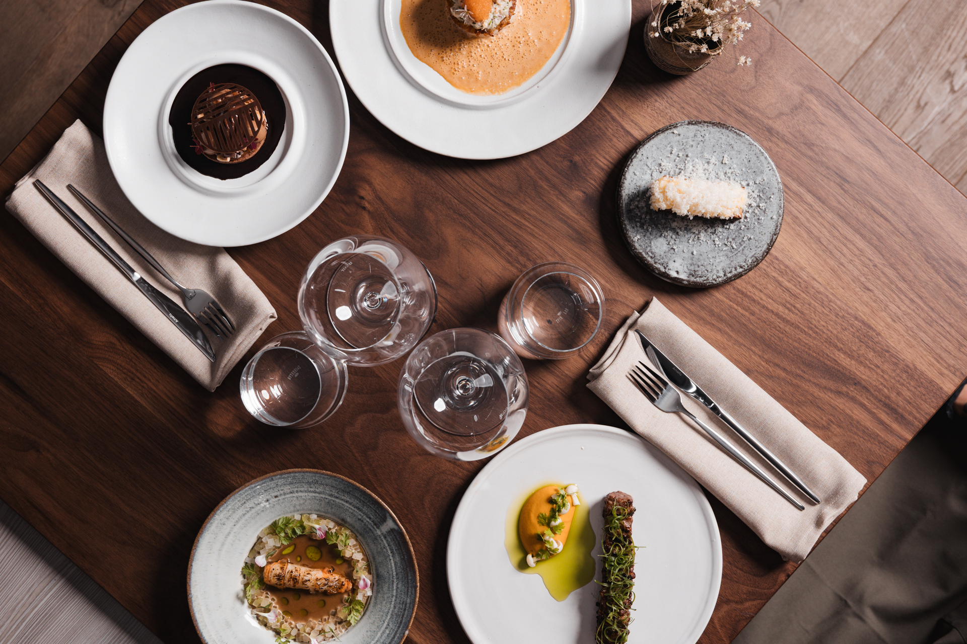Vi serverar en avsmakningsmeny noggrant matchat med dryckespaket och personlig service i en elegant och avslappnad miljö där varje detalj räknas.